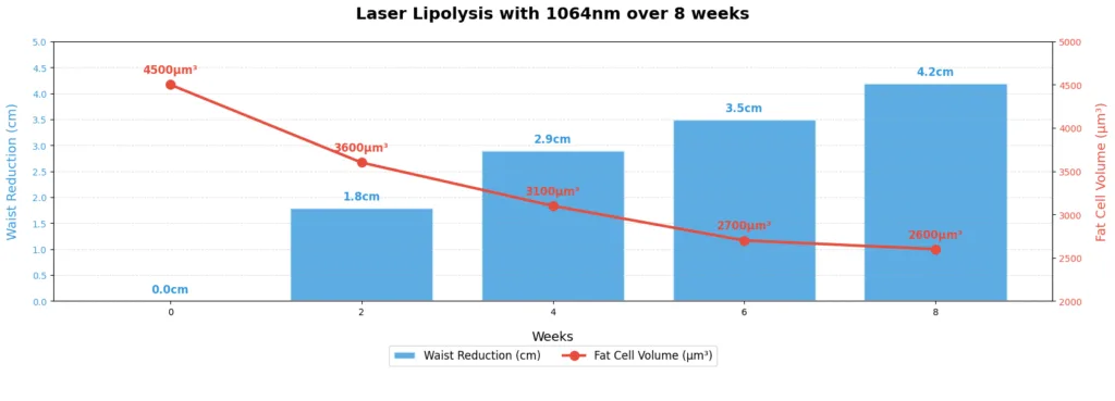 Как только жировые клетки становятся объектом воздействия, лазерная энергия вызывает термическую реакцию, которая разрушает структуру клетки. Жирные кислоты и отработанные продукты высвобождаются и постепенно перерабатываются лимфатической системой организма в течение последующих недель. Это постепенное удаление позволяет добиться естественного контурирования без вреда для окружающих тканей, обеспечивая длительный и безопасный эффект скульптурирования.